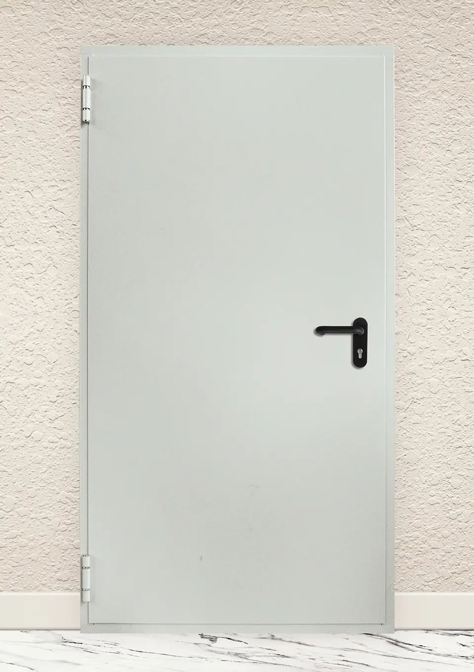 Пожароустойчива врата EI 90, еднокрила с период на огнеустойчивост до 90 минути в размер 80/200 см. Възможните посоки за отваряне са: навън/наляво; навън/надясно.